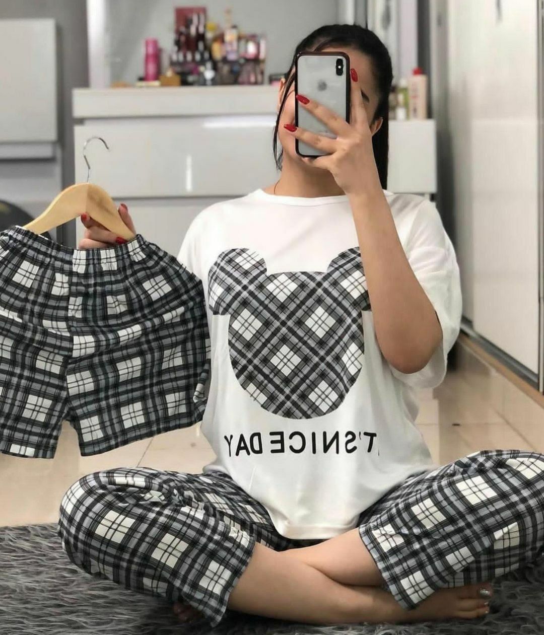 ناموجودسه تیکه راحتی زنانه و دخترانه تیشرت شلوار شلوارک فلامنت ترک نرم و لطیف