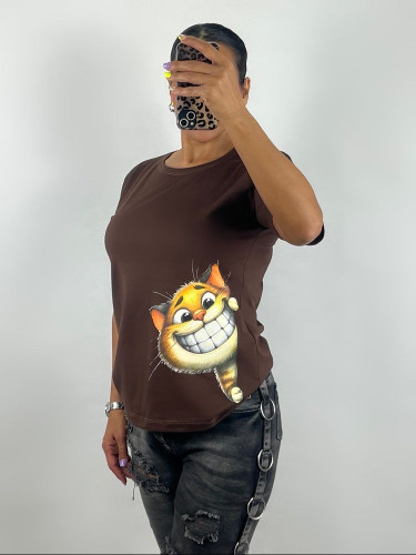 تیشرت زنانه و دخترانه با طرح پیشی خندان جنس نخ پنبه چاپ زول که خراب نمیشه مناسب سایز ۳۶ تا ۴۴