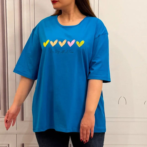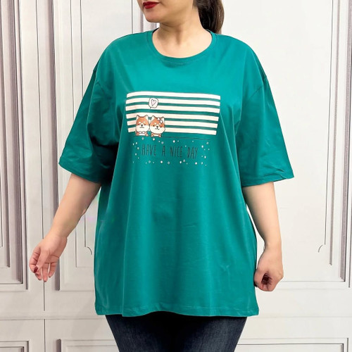 تیشرت زنانه سایز بزرگ پلاس پنج ایکس لارج جنس نخ پنبه صدرصد چاپ زول با دوام مناسب سایز ۳۸ تا ۵۴ گاها ۵۶