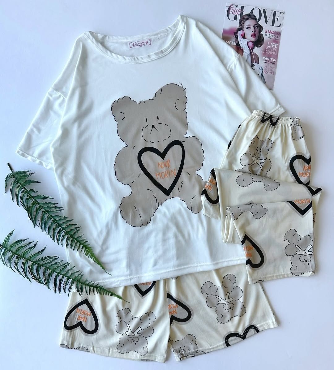 ست سه تیکه زنانه تیشرت شلوار و شلوارک جنس پنبه لاکرا نرم لطیف و راحت مناسب سایز ۳۸ تا ۴۶ با کشسانی ۴۸ شستشو اب سرد