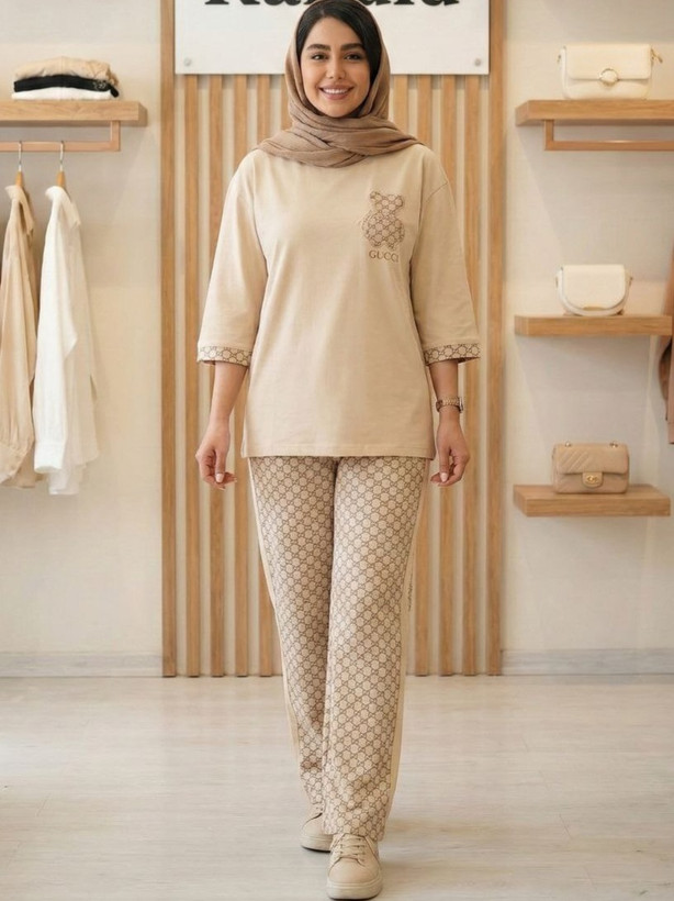 تیشرت شلوار زنانه قواره دار طرح گوچی و لویی ویتون