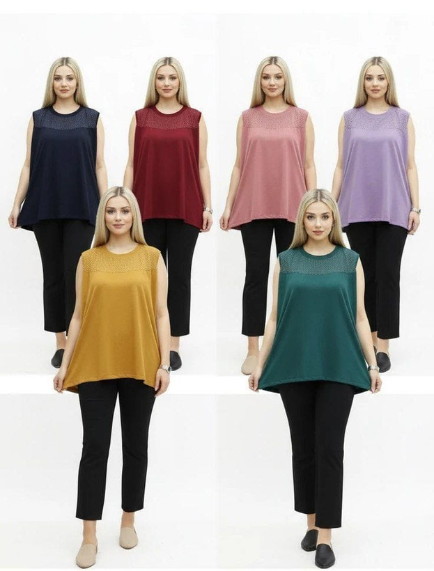 تاپ زنانه قواره دار ویسکوز صدرصد قیمت اقتصادی جلو سینه نگین کاری شده بدون ریزش مناسب کسانی که شکم و پهلو دارن مناسب سایز ۴۲ تا ۵۲ الی ۵۴ شستشو اب سرد