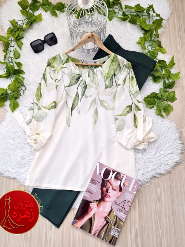 شومیز زنانه مجلسی طرح برگ سبز نورا جنس کرپ بوگاتی نرم و لطیف تنخور بسیار شیک مناسب سایز ۳۸تا ۴۶ لطفا به جدول سایزبتدی توجه کنید لطفاموقع ثبت سفارش سایز مورد نظرتون رو که طبق جدول سایزبندی انتخاب کردید اعلام کنیدسایز ۲ و ۳ و ۴