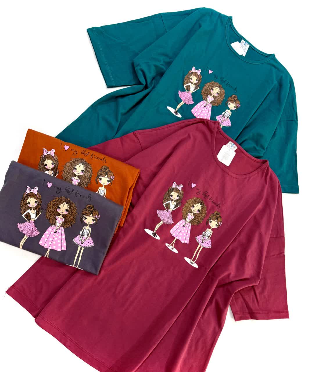 تیشرت زنانه قواره دار جنس نخ پنبه سوپر اعلا طرح سه دختر چاپ زول که اصلا پوسته نمیشه مناسب سایز ۴۰ تا ۵۲ الی ۵۴ شستشو اب سرد
