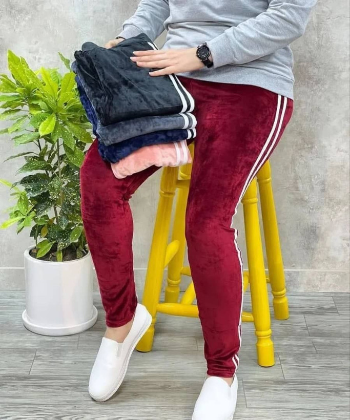 شلوار راحتی زنانه مخمل پاییزی جی وی جی | دوخط سفید نرم و لطیف