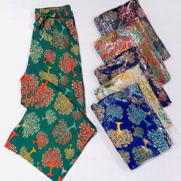 شلوار راحتی پلیسه زنانه طرح درختی کرپ نخ سبک و خنک مناسب خانگی و زیر مانتو