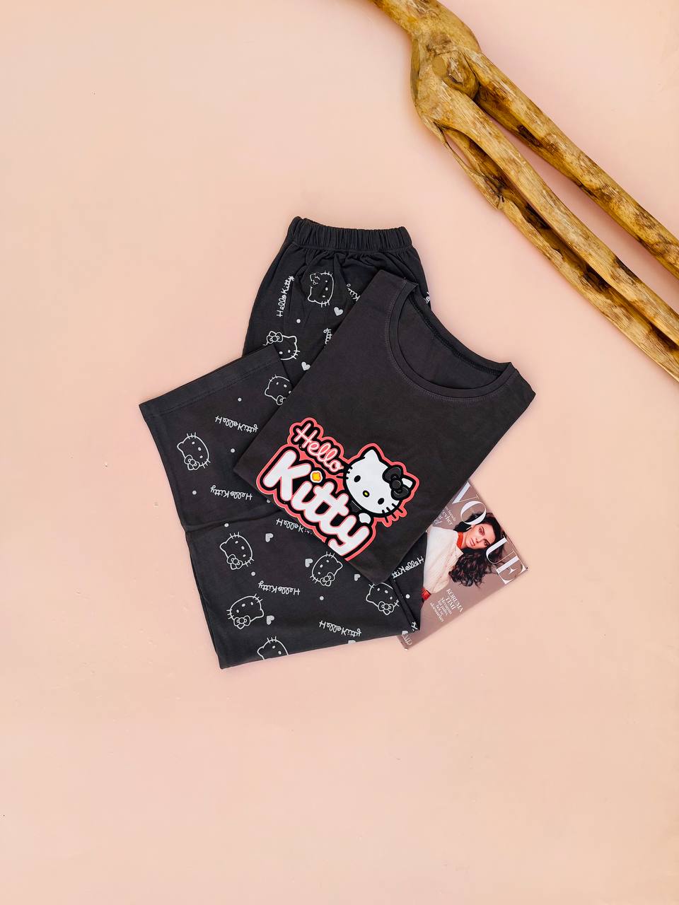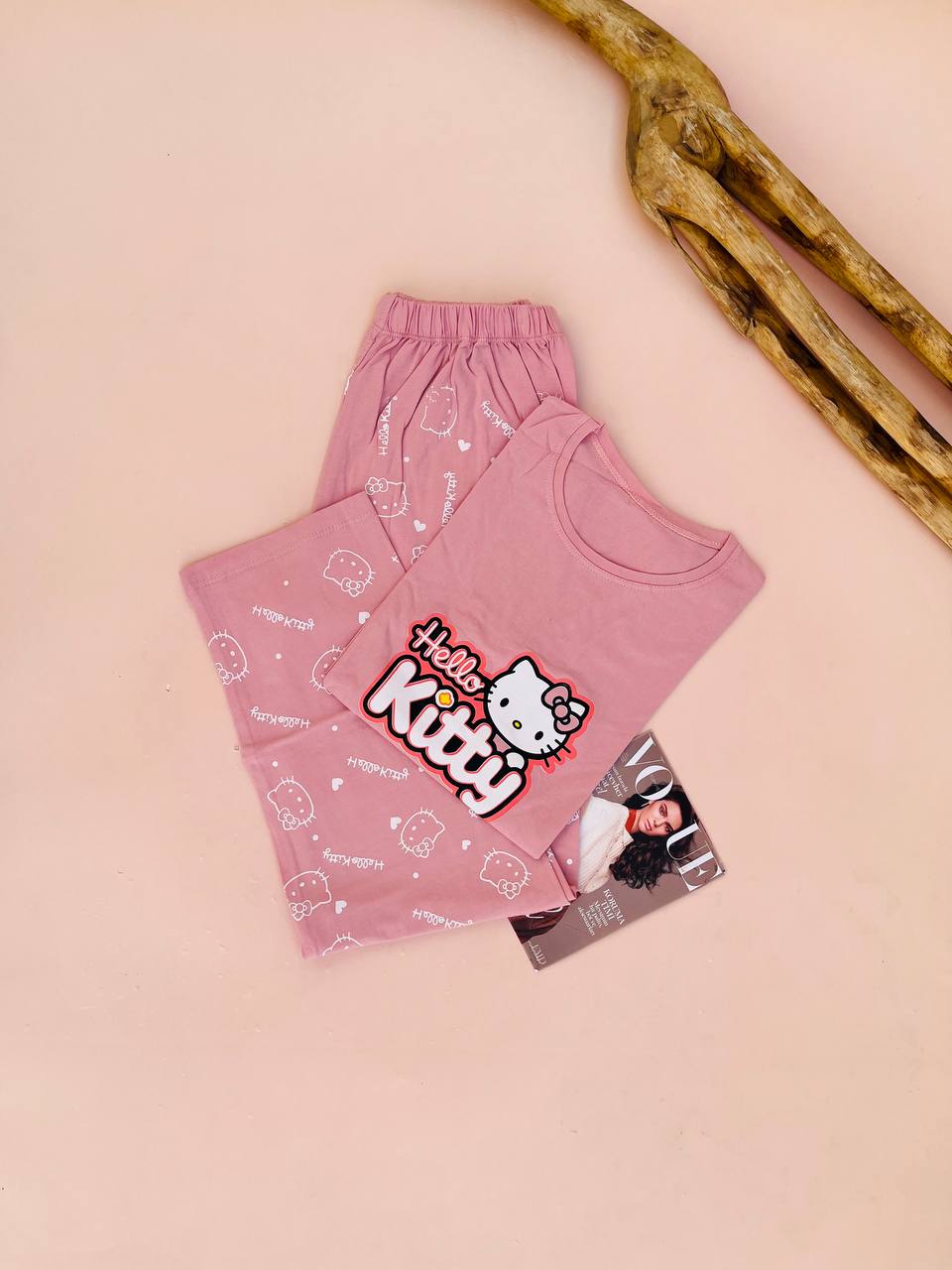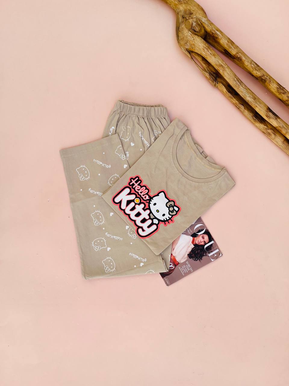 ست تیشرت و شلوار زنانه طرح کیتی جنس نخ پنبه سوپر اعلا
