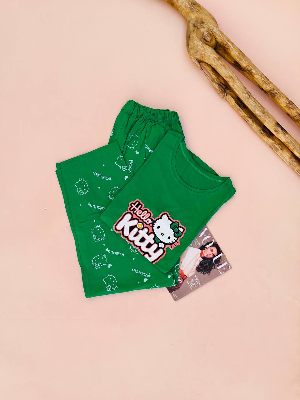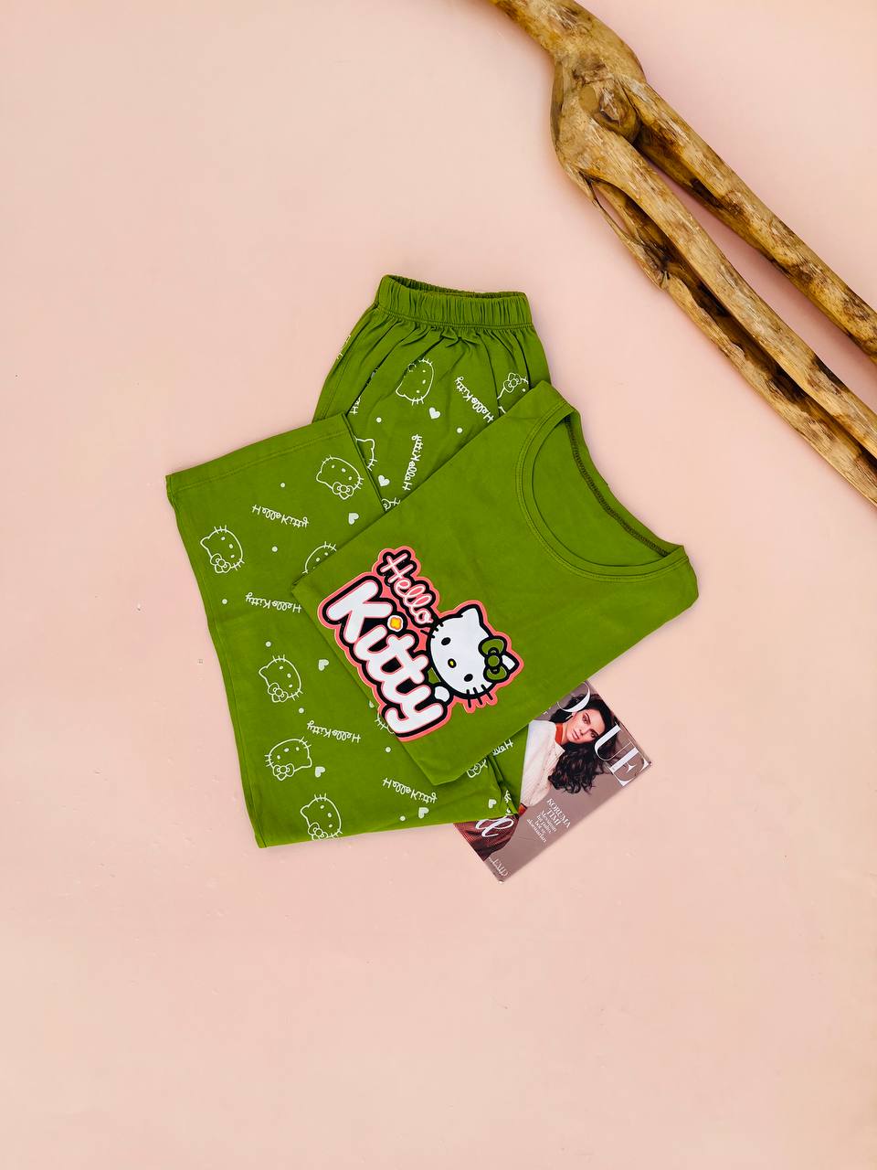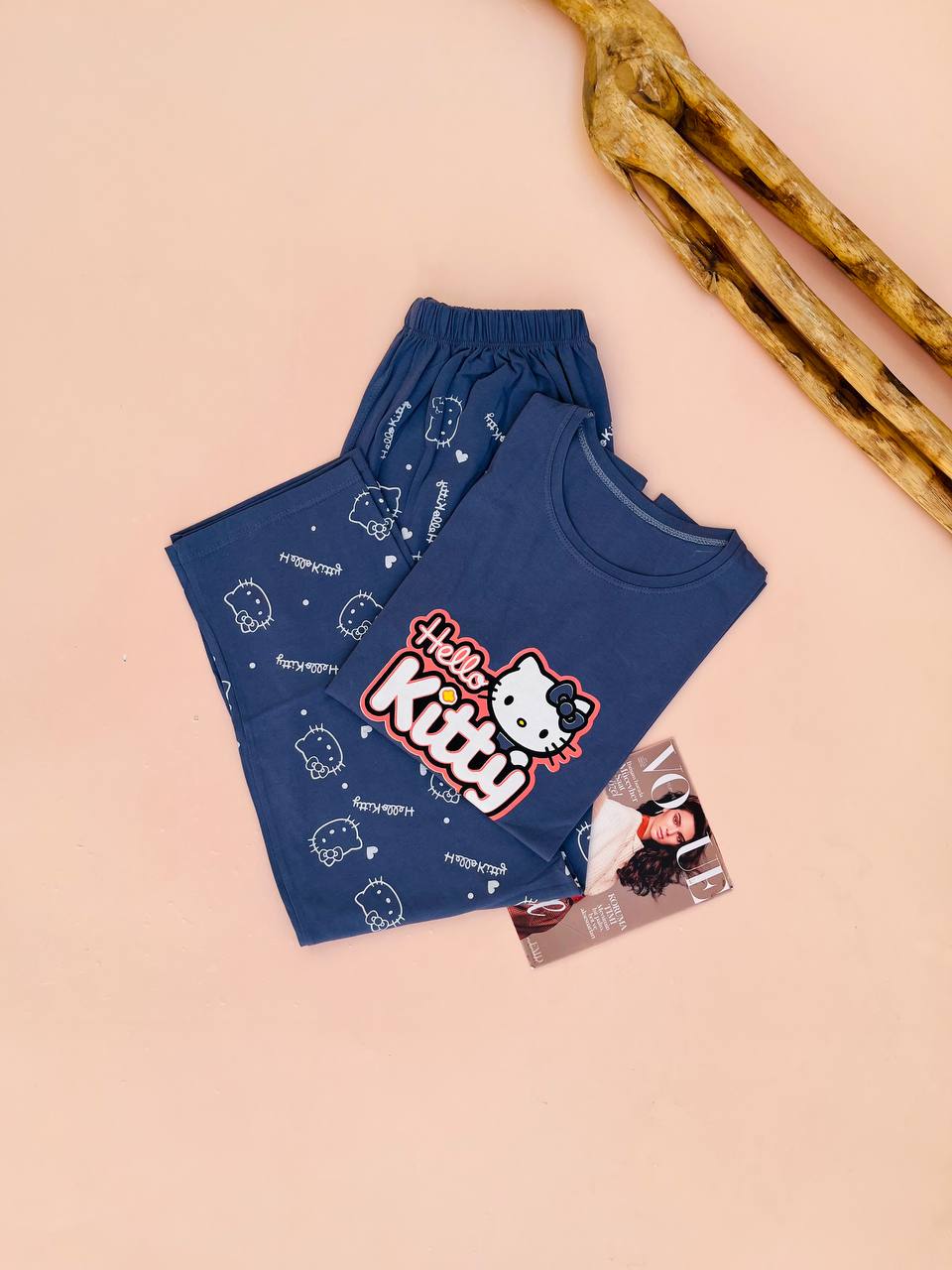 ست تیشرت و شلوار زنانه طرح کیتی جنس نخ پنبه سوپر اعلا