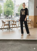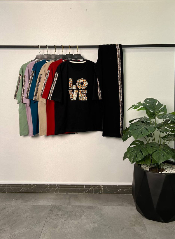 تیشرت شلوار زنانه طرح لاو جنس نخ پنبه سوپر اعاا کنار شلوار نوار دوزی شده سرشانه نوار دوزی شده چاپ زول تن خور شیک