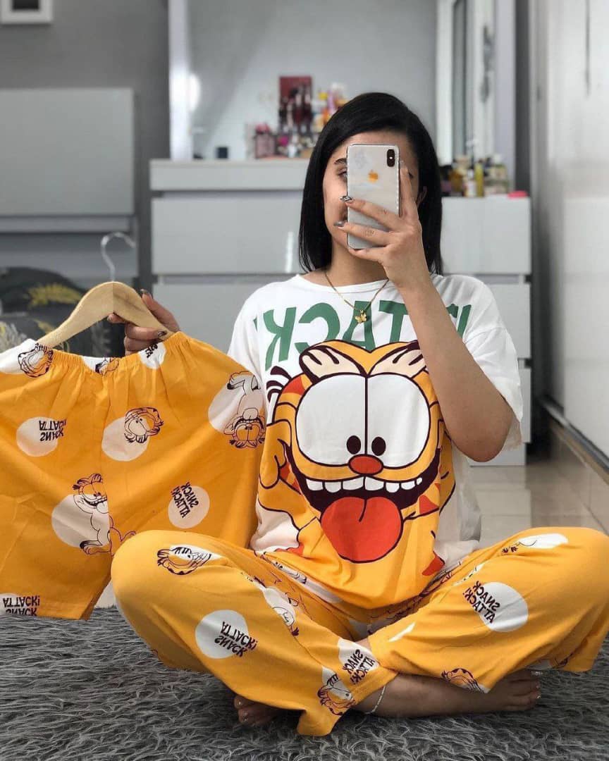 سه تیکه راحتی زنانه شورتک تیشرت و شلوار جنس پنبه لاکرا فری سایز مناسب ۳۸ تا ۴۴ الی ۴۶