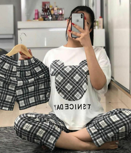 ناموجودست سه تیکه زنانه تیشرت شلوار و شلوارک جنس پنبه لاکرا نرم لطیف وراحت فری سایز مناسب سایز ۳۸ تا ۴۶ با کشسانی ۴۸