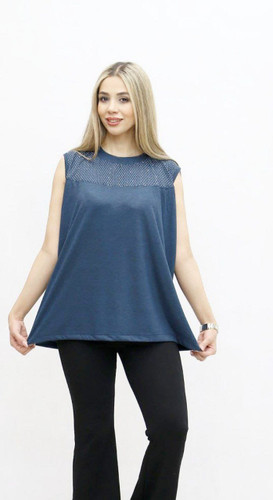 تاپ زنانه یقه گرد جنس کرکرای پنبه فانریپ بسیار نرم و لطیف دارای کشسانی مناسب سایز ۳۸ تا ۴۸
