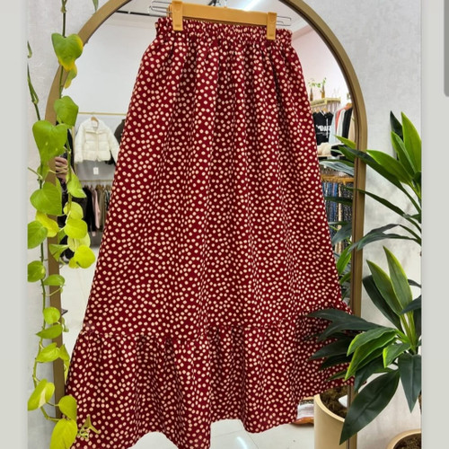 ناموجوددامن زنانه جنس کرپ پفکی بسیار نرم سبک و راحت ابرفت نداره چروک نمیشه رنگدهی نداره پایین دامن یه چین هست این دامن مناسب خانگی و بیرونی هست مناسب سایز ۳۸ تا ۴۸