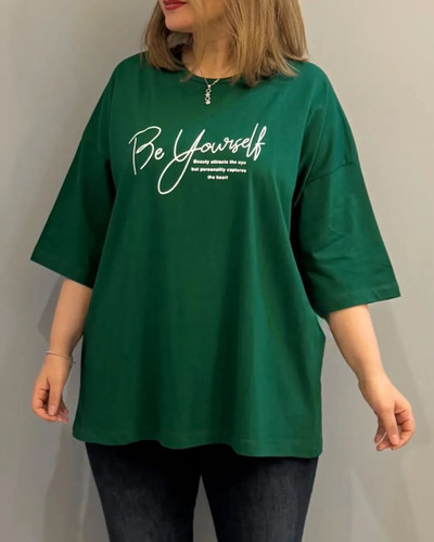 ناموجودتیشرت زنانه لانگ قواره دار نخ پنبه سوپر ۲۸ طرح نوشته رو سینه مناسب سایز ۴۰ تا ۵۲ الی ۵۴