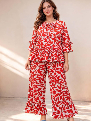 ناموجودتیشرت شلوار پلیسه با طرح گل ریز