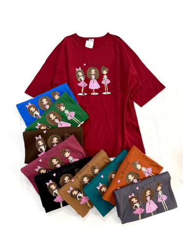 تیشرت زنانه قواره دار جنس نخ پنبه سوپر اعلا طرح سه دختر روسینه چاپ زول که پوسته نمیشه و با شستن خراب نمیشه مناسب سایز ۴۰ تا ۵۲ الی ۵۴
